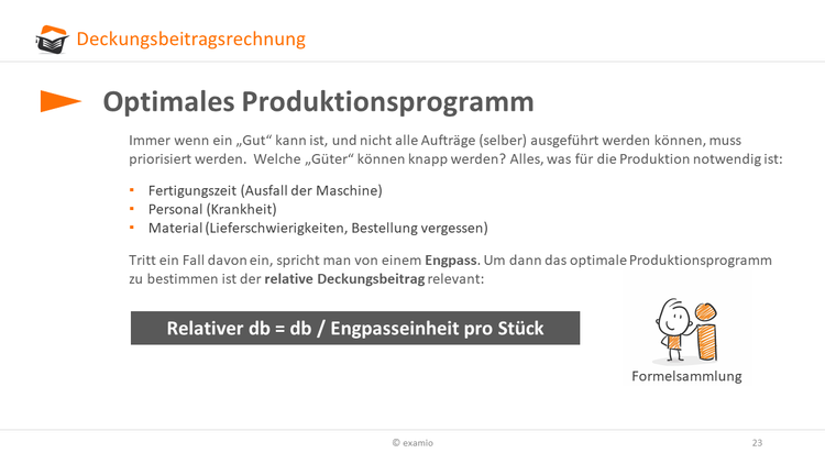 Die Entscheidungsregel lautet sodann: Produziere maximal viel von all jenen Erzeugnissen, die einen positiven Stückdeckungsbeitrag liefern.