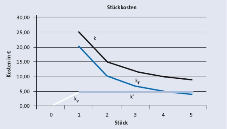 x = StückK =Kf + Kv gesamte Kostenk = K : x Durch-schnitts-kostenKf = gesamte fixe Kostenkf = Kf : x stückfixe KostenKv=kv • x gesamte variable Kostenkv =stück-variable Kostenk´ = Kx2 - Kx1 Grenz-kosten
