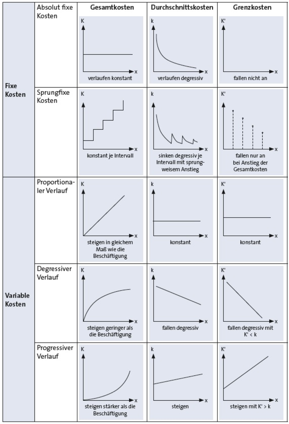 • Aufteilung in fixe und variable Kosten in Abhängigkeit von der Beschäftigung